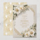 Convite Aguarela 3D flores brancas ouro Chá de Noiva