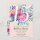 Um convite de aniversário cor-de-rosa e brilhante de néon pintado mão chique, elegante e feminino com tipografia do roteiro da escova com caligrafia elegante, doce quinze de Quinceañera do buquê floral da aguarela de turquesa. O pastel cora fundo cor-de-rosa da cor é inteiramente customizável.
