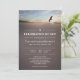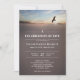 Um convite memorial com uma foto de uma águia iluminada ao redor de uma paisagem de montanha ao nascer do sol com nuvens adorando um céu azul pálido.