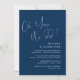 Este é o convite para a festa de casamento íntimo, com design minimalista / minimalista de script Azul Marinho (ah sim, fizemos)
