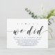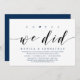 Tema azul-marinho elegante com escrita moderna, cartão de convite de casamento furtivo (Ah Sim, Nós Fizemos). É perfeito para a sua celebração casual de casamento à beira do lago.