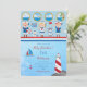 Ahoy Ali primeiro aniversario de Cotação Náutica Marinheiros Vermelhos Azuis Brancos Lighthouse Convite