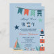 Marque a vela para uma alegre festa de bebê com nosso "Ahoy It's A Boy NMaritime Chá de fraldas Invitation! Este moderno convite azul traz a magia do mar à vida com um prazer sob o tema do mar, apresentando um conjunto de peixes, um charmoso barco à vela descansando na areia da praia, e um grande farol no fundo. Os detalhes do convite podem ser personalizados para incluir as informações de data, hora, local e RSVP do seu chá de fraldas. Se você precisar de outro produto ou personalização correspondente, por gentileza, envie uma mensagem via Zazzle.