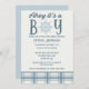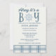 Ahoy! É um menino! Comemore a chegada de um novo bebê em estilo com esses convites náuticos para chuveiros de bebês. Eles apresentam o slogan bonitinho "Ahoy it's boy" , uma paleta de cores azul e creme e xadrezes e sotaques náuticos.