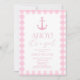 Convite Ahoy, é um Chá de fraldas náutico rosa elegante
