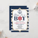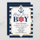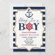 Este é um "Ahoy", tema náutico. É um "Boy"! convite. chá de fraldas rapaz borrifador marinho azul âncora vermelha brilha ouro barco roda oceano mar