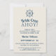 Um convite náutico para uma viagem de cruzeiro à soleira. Apresentando um gráfico de rodas do navio ao estilo da vintage com as palavras "Noiva Crew Ahoy!" em tipografia elegante. No verso do convite figura um itinerário para a soleira do navio de cruzeiro, bem como informações sobre os custos (particularmente úteis para os cruzeiros pela primeira vez). Disponível como cartões de convite impressos ou como um download instantâneo para enviar em seu telefone. Uma forma excelente de entusiasmar as garotas pela última vela antes do véu! Os modelos de texto são fáceis de personalizar.