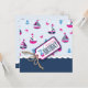 Doces cartões de aniversário de tema náutico com veleiros, caranguejos e âncoras para o segundo aniversário. O efeito 3D gêmeo e etiqueta.