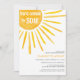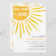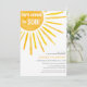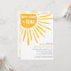 Convide a família e os amigos para o seu chá de fraldas temático com este belo convite para o chá de fraldas dos rapazes. Apresenta o texto "Aqui Vem O Filho" com um sol amarelo de aquarela. As costas estão decoradas com um padrão solar. Facilmente personalizável. Original Watercolor © Michele Davies.