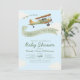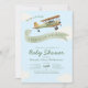 Vintage style biplane airplane baby shower invitation is a great gender neutral theme for a baby on the way! The green and yellow color scheme and blue sky are cute fun and sweet!