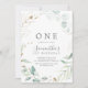 Este belo verde e o 1º aniversário da folha de ouro são perfeitos para uma festa de aniversário moderna. O elegante design botânico apresenta uma aquarela clara e arejada, eucalipto, acentuado com folhas de brilho de ouro branco.