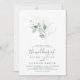 Este convite para casamento de folha de ouro e verduras é perfeito para um casamento moderno. O elegante design botânico apresenta uma aquarela clara e arejada, eucalipto, acentuado com folhas de brilho de ouro branco.