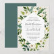 Nosso convite para o casamento de Alabastro envolve seus detalhes do dia do casamento com uma estrutura geométrica moderna de verde-aquarela pintada, folhagem botânica, rosa branca e flores de peônia.