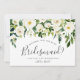 A placa de proposta do partido floral Chic apresenta uma borda superior de rosas de marfim e peões brancos com folhagem botânica e verde-luxuosa. Personalize com os detalhes da sua madrinha (mostrada com "você será minha madrinha?" Eu não posso dizer que eu não tenho você") em modernos textos escritos à mão e em letras sans serif tradicionais. Convites invertendo para joias ricas em verde-jasper.