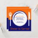 Convite alaranjado e azul do divertimento do comensal que é apropriado para comensais ocasionais do aniversário, bufetes da casa, recolhimentos do restaurante ou todo o partido de comensal da escolha. O design é muito sugestivo e diz imediatamente a seus convidados que há algo delicioso na loja. Sinta livre ao re-size, re-cor e edite o texto como desejado.