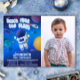 Dê um start em seu aniversário com esse convite fora do mundo. Todos os elementos e fundo são desenhos originais e digitalmente criados para capturar a atmosfera de uma jornada interstelar pelo espaço sideral.