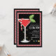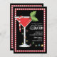Um cocktail vermelho festivo é decked para fora com um azevinho do divertimento decora, e um bastão de doces listrado vermelho e branco festivo, quando envolvido em poucas luzes do feriado. Um grande design para a família e amigos de convite a sua celebração do Natal!