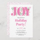 Espalhe a alegria da temporada de festas e convide seus amigos e família para a sua próxima celebração de Natal com esta alegria rosa e alegre convidada. Mostrando a palavra "JOY" em uma fonte festiva, o convite é enfeitado com amoras vibrantes e verde, perfeito para adicionar um toque pessoal às festividades. Na parte de trás da placa, um padrão de bolinhas rosa cria uma atmosfera verdadeiramente alegre, definindo o tom para sua festa de férias. Certifique-se que seus convidados sintam o calor e o entusiasmo da estação com este convite especial!