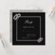 Elegante e sofisticado convite de casamento moderno em cores prata e preto. Com uma moldura brilhante e elegante de glitter prateado envolvendo os detalhes do seu evento, em um fundo preto, com decorações nos cantos de anéis de noiva de diamantes cintilantes. Todo o texto é totalmente personalizável para atender às suas necessidades. Se você precisar de ajuda para personalizar seu produto, ou gostaria de produtos combinando, por favor entre em contato comigo através da minha loja e ficarei muito feliz em ajudá-lo.