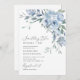 Convide amigos e familiares para você ou um chá de panela de alguém amado com este convite elegante, com flores aquáticas e verde em cores azuis empoeiradas.
