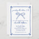 Algo Azul Antes De Eu Fazer Chá de panela. Celebre a noiva para estar com este design elegante e eterno, perfeito para um chá de panela chic. O convite apresenta a frase "Algo Azul Antes de Eu Fazer" no topo, escrita em uma mistura de letras elegantes de escrita e fontes clássicas de serifa em tons de azul, definindo um tom encantador para o evento. A design apresenta ilustrações azuis delicadas, incluindo sotaques florais e detalhes graciosos, organizadas sobre um fundo branco limpo. Os detalhes do chá são exibidos em uma mistura de fontes clássicas de estilo serif e manuscrito, combinando sofisticação com um talento moderno. Este convite é totalmente personalizável, permitindo que você ajuste o texto e o layout perfeitamente de acordo com o seu evento. Disponível como cartão impresso ou arquivo digital baixável, é uma forma na moda e memorável de convidar os entes queridos a celebrarem a noiva a ser.