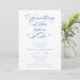 Um elegante estilo de vintage "algo azul antes de "eu"" chá de panela com letra de caligrafia vintage em francês Blue. No verso está um padrão floral azul de chinoiserie.
