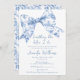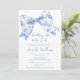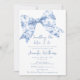 Celebrar em estilo com o nosso elegante e charmoso chá de panela do tema "Algo Azul antes de mim". Apresentando um delicado arco azul em um estilo chic Coquette e um padrão floral de eterno no verso, este design adiciona um toque de sofisticação de vintage ao seu dia especial. Perfeito para um chá de panela clássico, romântico e pré-pago.
