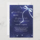 Um fundo azul marinho, decorado com brilho azul e um arco. A cor azul é irregular. Personalize e adicione um nome e detalhes da parte. Texto: Algo azul antes de mim.