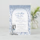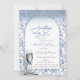 Este convite elegante apresenta um arco azul charmoso perfeito para um chá de panela "algo azul". Esses convites de chá de panela são facilmente personalizados para o seu evento simplesmente adicionando seus detalhes. Os intrincados motivos florais e matizes azuis macios sussurram de algo antigo, algo novo, e claro, algo azul.