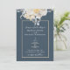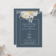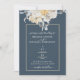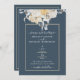 ALGO AZUL! O convite tradicional para o casamento floral apresenta um elegante design floral azul e branco num fundo mudo com trim de ouro