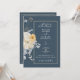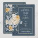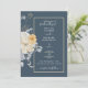 ALGO AZUL! Convite de casamento floral tradicional apresenta um design floral azul e branco elegante em um fundo suave com acabamento em dourado