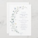Flores silvestres de cor aquática delicadas e elegantes, ao lado de seus detalhes de eventos. Paletas de pastel de amarelo macio, branco esbranquiçado, verde-sábio, azul empoeirado e verde botânico, simples e romântico. Excelente floral algo convites de chá de panela azuis para o moderno partido rústico, festa de jardim do boho country no primavera e verão.