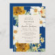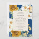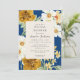 Esta floral de aquarela algo azul sobre o tema chinoiserie chá de panela apresenta flores silvestres do jardim em cor branca, amarelo quente e laranja.A cor amarelo quente, creme, branco e azul empoeirado é uma paleta de cores perfeita para casamentos de primavera e verão.