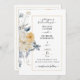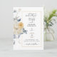 ALGO AZUL! O convite tradicional para o casamento floral apresenta um elegante design floral azul e branco num fundo mudo com trim de ouro