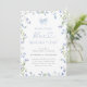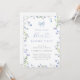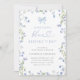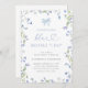 Celebrar a noiva com este elegante chá de panela "Algo azul antes de mim". Apresentando um delicado design de flor silvestre de aquarela em tons azuis suaves, este convite expele encanto e sofisticação. Um arco azul-escuro e uma tipografia de script graciosa adicionam um toque romântico, fazer a escolha perfeita para uma festa de jardim, primavera ou chá de panela azul com tema floral.