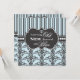 O design preto elegante do damasco e da listra em um fundo azul bonito faz um design bonito com uma sensação francesa que seja perfeita para um algo velho, algo nova, algo pedida, algo chá de panela temático azul.