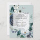 O convite para o casamento floral elegante e moderno do "boho chic" apresenta um fundo de delicadas flores de aquarela em azul, azul empoeirado, branco e marfim. Seus detalhes de casamento estão sobrepostos em um elemento branco em letras de cinzas elegantes acentuadas com escrita de caligrafia manual. No verso de um elegante e coordenado padrão de ton azul empoeirado sur ton striped, Color pode ser alterado usando o botão personalizar. Para obter ajuda ou solicitação personalizada, entre em contato conosco através da loja. Perfeito para o casamento da primavera, casamento de verão, casamento rústico. Coordene a coleção de casamento e acessórios de "Algo azul".