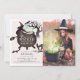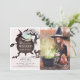 Este belo convite de fotos de aniversário da garota do Halloween "algo malvado está se preparando" apresenta um caldeirão com fumaça na cor do arco-íris, uma bruxa sobre uma vassoura, uma árvore, morcegos e um gato. O verso apresenta um fundo branco com faixas diagonais cor-de-rosa pinceladas. Personalize-o para as suas necessidades. Você pode encontrar produtos correspondentes na minha loja.