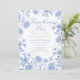 Comemore a noiva a ser com charme de eterno e sofisticação. Este chá de panela "Algo Azul" apresenta florais elegantes de chinoiserie azul formando um quadro artístico irregular em torno da caligrafia moderna. A frase "Algo Azul Antes de Eu Fazer" é elegantemente destacada em um roteiro azul suave, capturando um sentimento romântico clássico com uma reviravolta na moda. O dorso apresenta um padrão azul uniforme do tronco floral, completando o design com refinado talho de safra. Perfeito para Algo Azul, Chinoiserie, País Francês ou chás de panela temáticos Azul e Branco, este convite combina com celebrações de primavera, verão, outono ou inverno com graça e elegância. 🌸 🌿