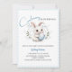 Esta design apresenta o tema de chá de fraldas Páscoa "Almofônny Is On The Way" para o chá de fraldas de um menino bebê com xadrez de gingham azul pastel e coelho branco bonito com uma ilustração de ovo azul de Páscoa. Este produto pode ser facilmente personalizado com os detalhes do seu evento pessoal.