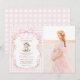 Convite Algum Coelho Laço Rosa Xadrez Foto de Chá de Bebê