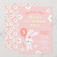 Celebre o seu dia especial com este adorável convite de aniversário "Um Coelhinho é Três!"! Apresentando um belo coelho segurando um balão, fontes de tendências e margaridas retrógradas, este encantador design traz um toque divertido inspirado na vintagem para uma celebração de aniversário na primavera. O texto pode ser personalizado para qualquer idade, fazer perfeito para qualquer convidado de honra amante de coelhinho! Disponível como um convite impresso ou um download digital, este convite para na moda é a forma perfeita de dar o tom a uma festa doce e memorável.