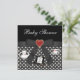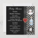 A Elegante Alice no Chá de fraldas preto das Wonderland convida com um padrão bonito de margaridas brancas em um fundo preto decorado com uma bonito fita e arco preto, um coração vermelho de tarte de geleia, uma garrafa de chá, uma xícara de chá e um chapéu de ódio louco! OBSERVE: Todos os elementos são impressos - não fitas e arcos reais. Se precisar de assistência para personalizar o seu produto, entre em contato comigo pela loja e terei todo o prazer em ajudar.