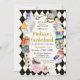 Alice no convite de aniversário da Wonderland, com fundo preto e branco e correspondente no verso. Convite para primeiro aniversario, convite para Onederland. Aniversário de criança de convite para Modelo Alice no País das Maravilhas. Onederland Invite, Tea Party. Convite de festas primeiro aniversario