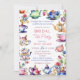 Alice no país maravilhoso da festa do chá chá de panela convite para descarregamento instantâneo, chá de panela moderno da festa do chá d'água, xícaras e molhos, potes de chá e flores
