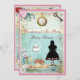O vintage elegante Alice no tea party neutro do chá de fraldas do país das maravilhas convida para meninas. Na parte dianteira dos convites é uma silhueta bonito de Alice, o gato de Cheshire, um bule, relógio de bolso do ouro, coração cor-de-rosa da jóia, o coelho branco com seu relógio de bolso, e um bonito bebe-me garrafa. O fundo é um papel bonito do jornal do vintage com rosas azuis e as margaridas brancas, uma chave antiga, e um bonito bebem-me garrafa. Há uma beira cor-de-rosa bonito com corações minúsculos. NOTE POR FAVOR: Todos os produtos em Zazzle têm imagens impressas do plano. Estes convites bonitos são decorados em ambos os lados. Todo o texto é inteiramente customizável encontrar suas necessidades e você pode mudar o estilo, a cor e o tamanho de pia batismal da pia batismal se você deseja. Se você precisa algum auxílio que personaliza seu produto me contacta por favor através de minha loja e eu estarei feliz ajudar.