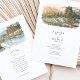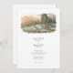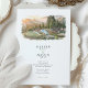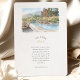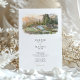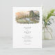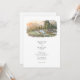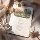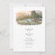 The coordinating back shows a closer poolside vignette with lounge chairs, stone decking, and lush plantings against a hazy mountain backdrop, paired with a “Finer Details” heading for your extra information. Clean serif typography and subtle script accents sit in generous white space beneath the artwork, keeping the overall look airy, modern, and elegant. All wording is fully customizable, making this suite perfect for Big Sur celebrations, coastal resort weddings, winery weekends, or any scenic mountain destination event.