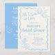 On the front, you'll find space for all the essential details: the bride's name, the location, as well as the date and place of the shower. The charming handwritten font and beachy icons create a fun and relaxed vibe, inviting guests to join in the festivities. The soft sky blue and off white color scheme evokes the serene beauty of the coast, while the playful design elements ensure that your invitation stands out.
