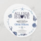 All I Sea Is Love Nautical Bridal Shower Invitation watercolor Blue Seashell & Ocean Theme invite, Celebrate love by the sea with this charming design invitation, designed in a unique round shape with hand-drawn blue seashells, starfish, coral, and nautical accents. The marine-inspired artwork forms a soft ocean wreath, framing your event details with elegance and beachy flair. Featuring a bold headline with a heart replacing the “O” in “LOVE,” this design captures the romance of the sea and is perfect for a beach bridal shower, coastal celebration, or destination wedding event. Personalize with the bride’s name, date, and shower details for a one-of-a-kind invitation guests will adore.