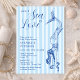 The graceful script typography combined with the bold mermaid artwork creates a sophisticated seaside aesthetic that feels both whimsical and timeless. This invitation is ideal for coastal bridal showers, beach house celebrations, seaside brunches, nautical-themed parties, and destination wedding showers. The serene blue palette evokes ocean waves and sunny seaside escapes, making it especially perfect for spring and summer bridal showers.